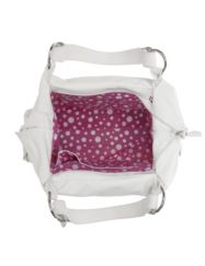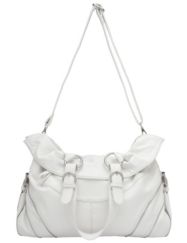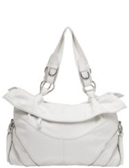 Fashionable hobo bag features a fun, fold-over design, with zipper trim and belt detailing. Spacious bag offers plenty of room to carry all the essentials with two exterior zippered pockets, interior zippered compartment and two technology pockets. Polka dot lined interior. Optional shoulder strap included.